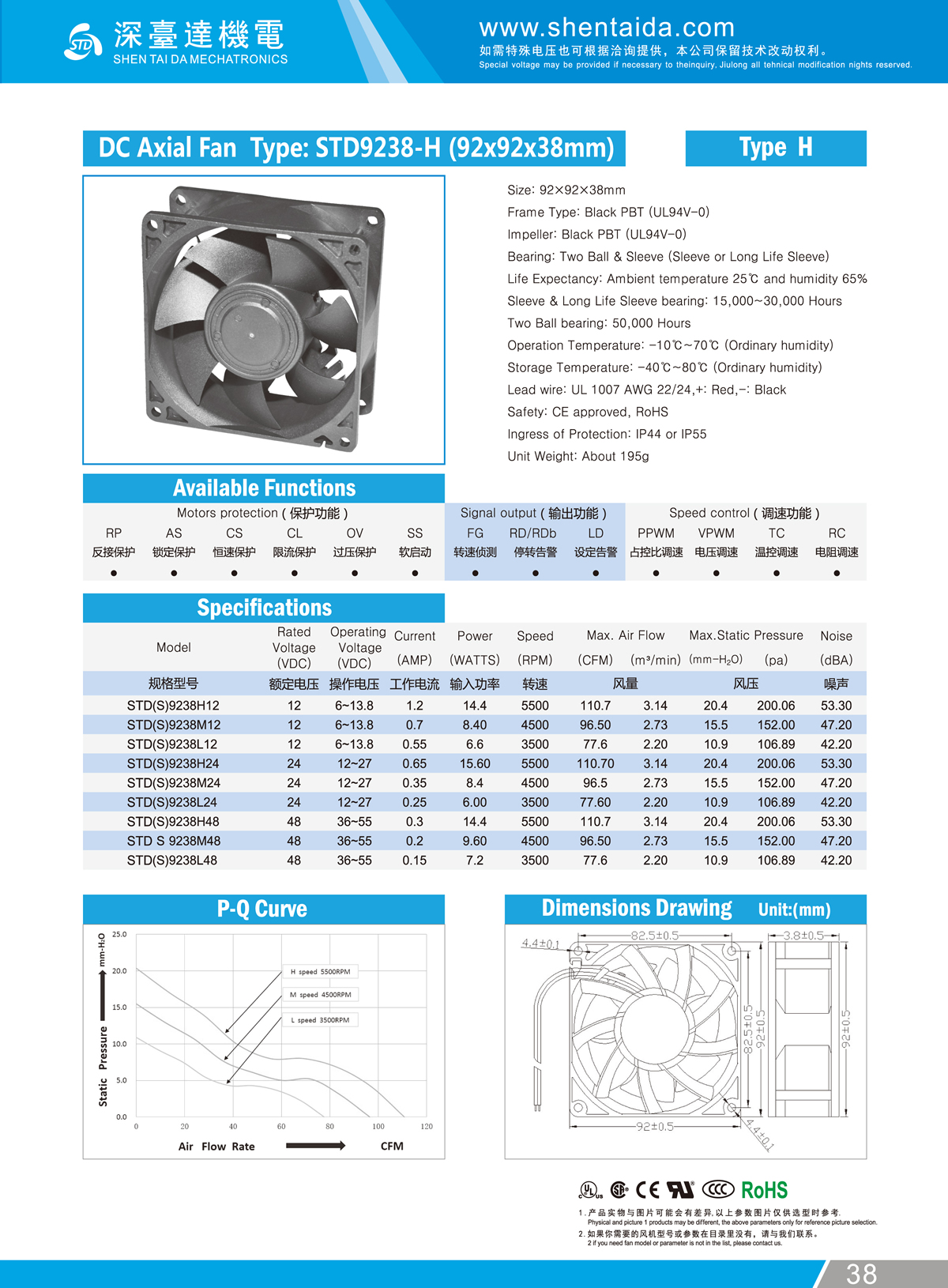 92x92x38mm - F